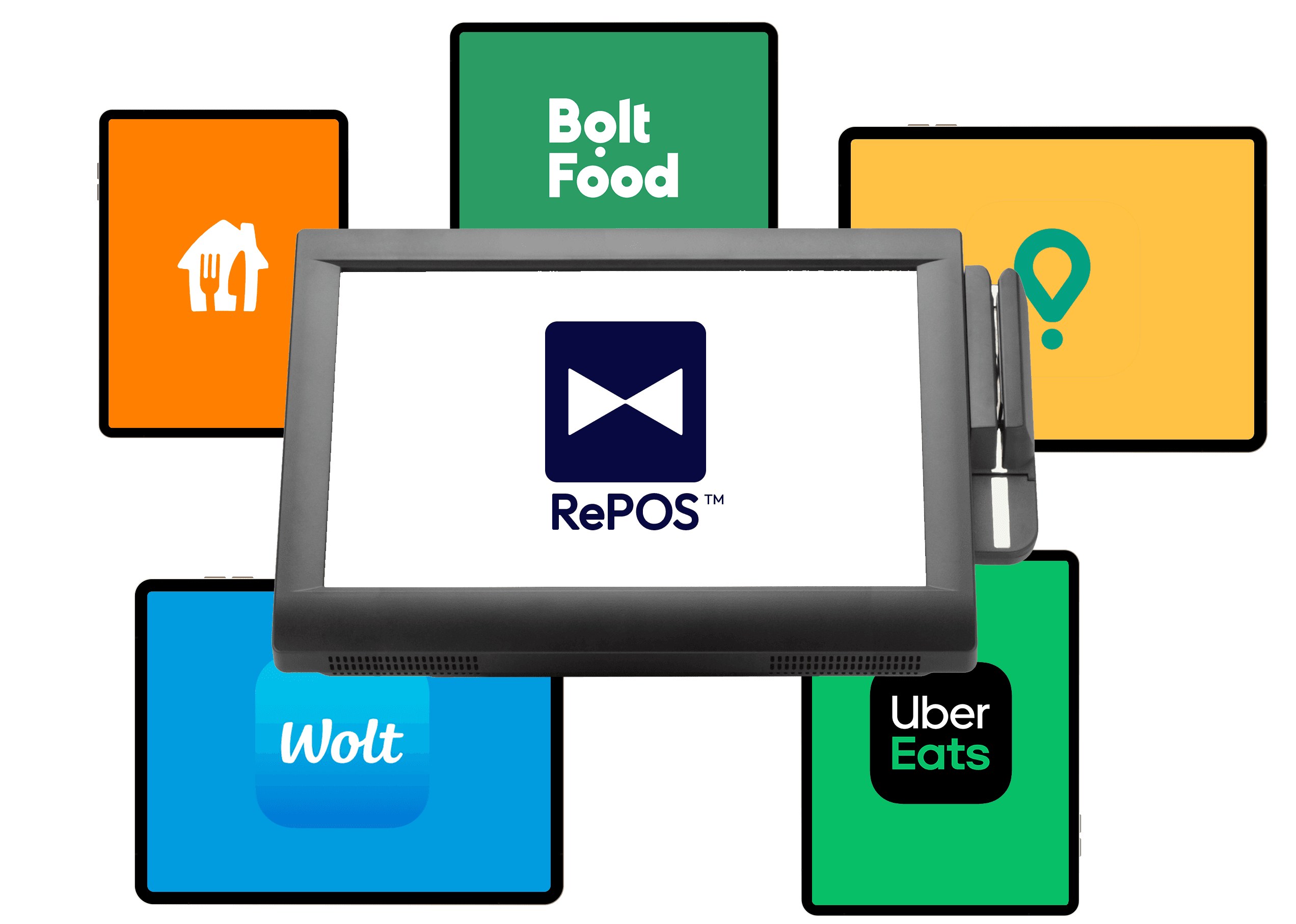 RePOS umożliwia integracje z najpopularniejszymi portalami do zamówień online, takimi jak Pyszne.pl, Bolt Food, Glovo, Wolt i Uber Eats.
