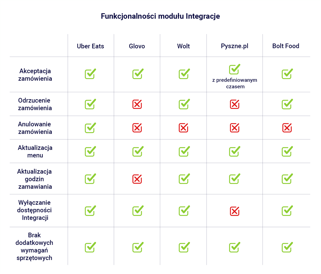 - Działa z Pyszne.pl, Bolt Food, Uber Eats, Glovo i Wolt